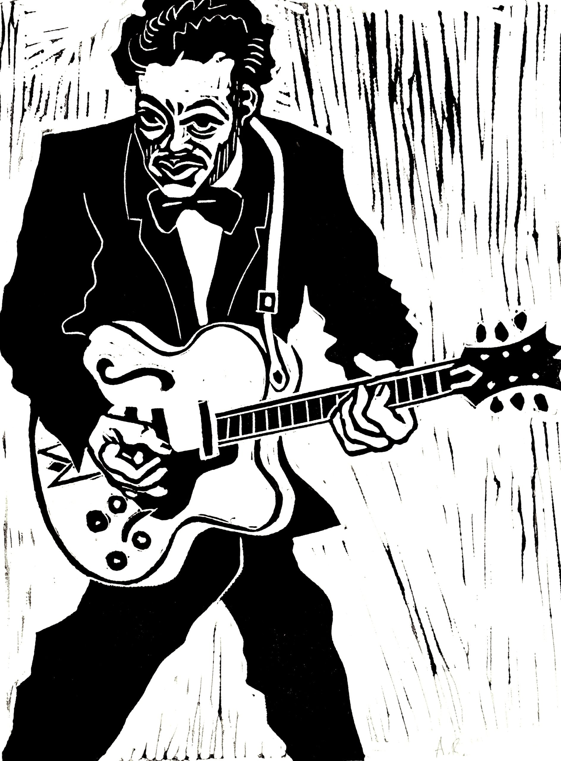 Chuck Berry lino cut.
